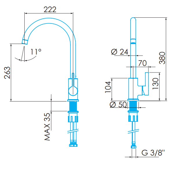 Torneira monocomando em aço inoxidável 304 com acabamento acetinado