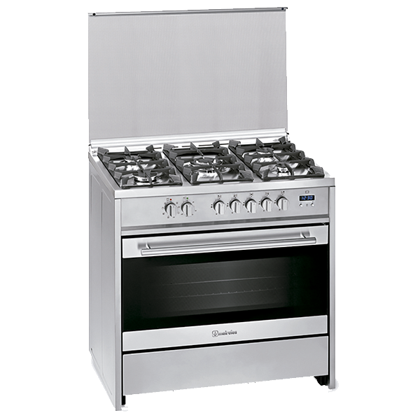 Forno: | - Forno a gás ventilado com acendimento | - Grelhador elétrico | - Relógio digital | - Luz | - Grelha e tabuleiro de recolha de molhos | - Porta amovível com vidro duplo | - Classe energética A