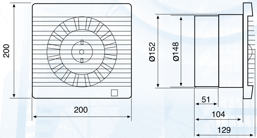 Velocidade: 2200rpm | Potência: 35w | Tensão: 230v - 50Hz | Caudal: 280m3/h | Nível de pressão sonora: 47dB(A) | Dimensões (AXLXP): 200X200X129mm | Conduta (diâmetro): 150mm | Peso: 1.44 kg | Proteção/Isolamento: IP44 | Luz piloto | Obturador anti-retornohotel,industria construção > exaustão hotelaria94.13NovoProduto Limitado €94,13