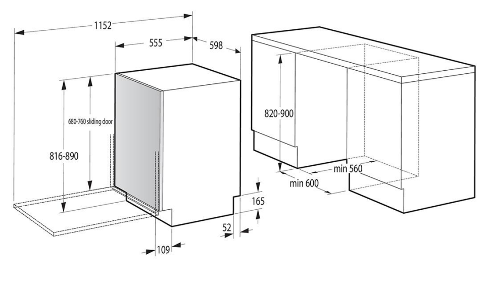 Medidas de instalação (AxLxP):820 x 600 x 555mm