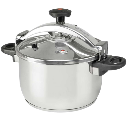 Panela de pressão clássica feita de aço inoxidável 18/10. |