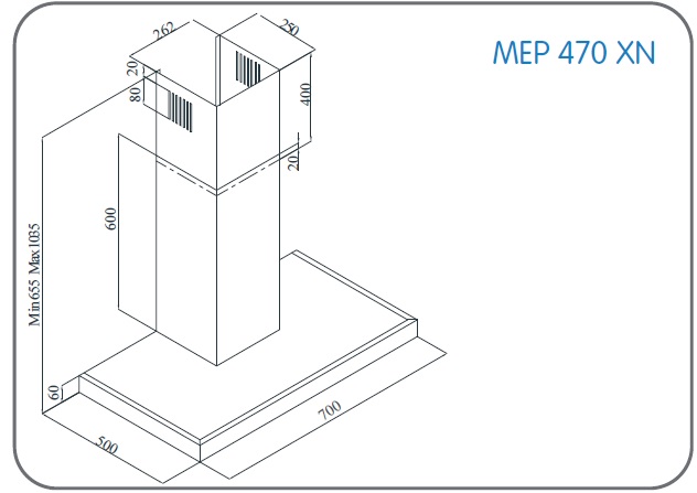 Exaustor decorativo de 70cm | Inox e vidro negro | Touch control | Display LED | Extracção máxima 540 m3/h | Nivel de ruído de 44 a 67 (dBA) | Temporizador | Motor tangencial | 2 Lâmpadas LED | Filtro de alumínio lavável | Classe energética Cencastre > exaustão encastre441.62NovoProduto Limitado €441,62