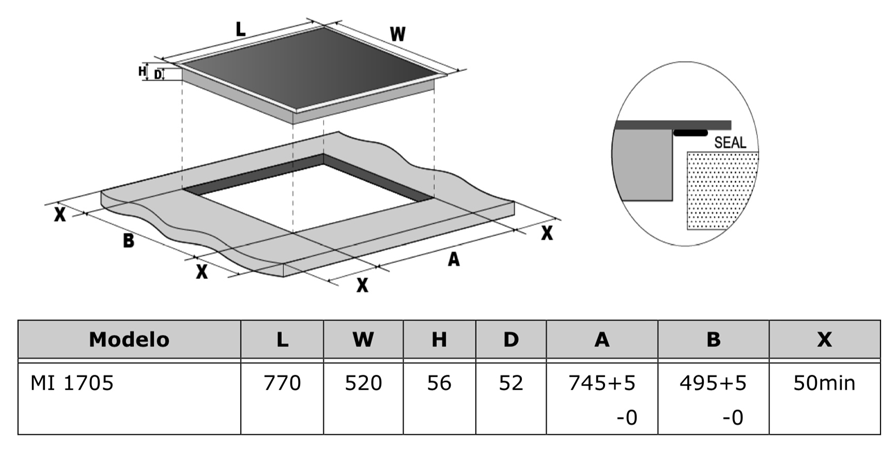 Placa vitrocerâmica de indução de 77cm |