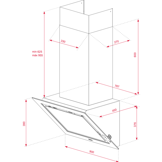 Chaminé decorativa vertical de parede | Painel de comandos Touch Control com display branco | Barra de iluminação LED | Três velocidades + uma intensiva | Indicador digital de velocidade selecionada | Funcionamento temporizado | Filtros metálicos interiores | Sistema de aspiração perimetral “Contour” | Indicador luminoso de saturação de filtros | Motor blindado de dupla turbina ECOPOWER | Função ar limpo: programa 24 horas para renovar o ar e odores da cozinha | Sistema de abertura pneumático | Bandeja interna para recolha de condensados / gordura | Capacidade de extração min. 290 m3/h – máx. 696 m3/h | Nível de potência sonora min. 53 dBA – máx. 71 dBA | Possibilidade de funcionamento em recirculação | Altura do produto (mm): 1001-1331 | Largura do produto (mm): 900 | Profundidade do produto (mm): 450encastre > exaustão encastre544.28NovoProduto Limitado €544,28