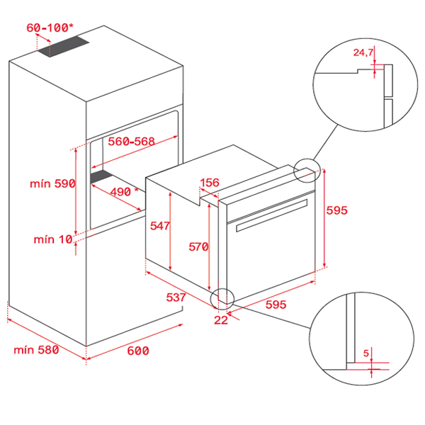 Sistema de 1 guia telescópica Plus Extension, 5 alturas de cozinhado |