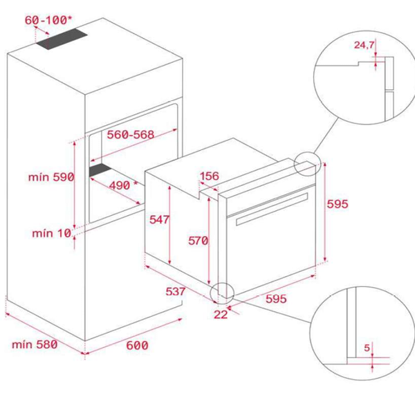 Suportes laterais cromados, 5 alturas de cozinhado |