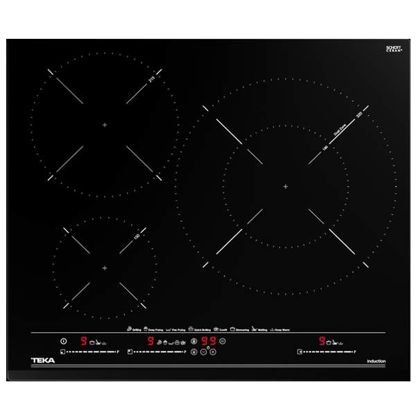 MasterSense | Touch Control MultiSlider com bloqueio de segurança | Programador do tempo de cozinhado | 3 zonas de cozinhado | 1 zona de Ø 150 mm | 1 zona de Ø 215 mm | 1 zona duplo circuito de Ø 185/320 mm | Função Power Plus | Função STOP & GO | Função Mute | Sistema de otimização de recipiente Vidro frontal biselado Schott Ceran (4mm) | Indicadores de calor residual | Desligar automático de segurança | Fácil instalação com sistema Fast Click | Medidas gerais (axlxp): 53x600x510mmencastre > placas462.37NovoProduto Limitado €462,37