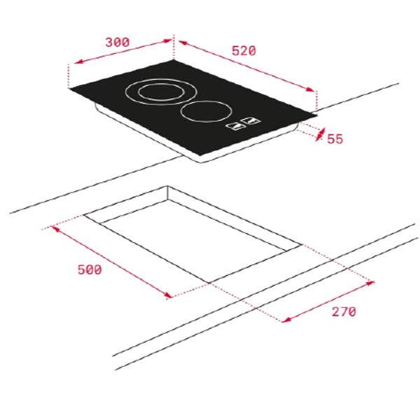 Placa vitrocerâmica | Painel Touch Control com sensores acústicos e bloqueio de segurança | Vidro frontal biselado Schott Ceran® (4 mm altura) | Programador do tempo de cozinhado | 2 zonas de cozinhado: | - 1 hight light Ø 120/180mm | - 1 hight light Ø 145 mm | Indicadores de calor residual | Fácil instalação com Sistema Fast Click | Cor: Vidro Preto | Medidas exteriores (CxL): 520x300mmencastre > placas164.15NovoProduto Limitado €164,15