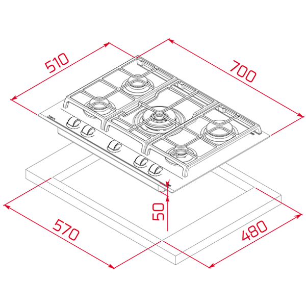 Cristal Gás com ExactFlame | Comandos frontais com design ergonómico | Vidro frontal biselado Schott Ceran (4 mm altura) | 9 níveis de potência com controlo exato da chama | 5 queimadores | -1 queimador duplo anel 4,00 kW | -2 queimadores semi- rápidos 1,75 kW | -1 queimador rápdo 2,80 kW | -1 queimador auxiliar 1,00 kW | Segurança por termopar | Acendedor elétrico | Grelhas de ferro fundido de ampla superfície | Kit de fácil instalação | Preparada para gás butano com injetores opcionais para gás natural | Altura do produto (mm): 98 | Largura do produto (mm): 700 | Profundidade do produto (mm): 510 | Cor: Cinzento / Biselado Frontalencastre > placas445.82NovoProduto Limitado €445,82