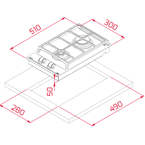 Combinável com qualquer placa IZ ou TZ: kit de união 40204394 (510 mm profundidade) |