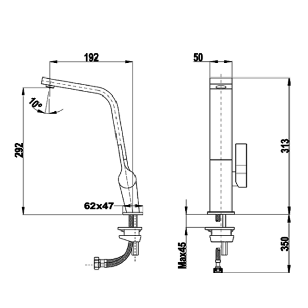 Cano giratório | Filtro anti calcário integrado no cano | Tubos de alimentação flexíveis de 3/8 e 1/2 de alta resistência | Superfície ultra resistente pela tecnologia PVD | Altura interior (mm): 292 | Profundidade interior (mm): 192 | Altura do produto (mm): 313encastre > misturadoras350.86NovoProduto Limitado €350,86