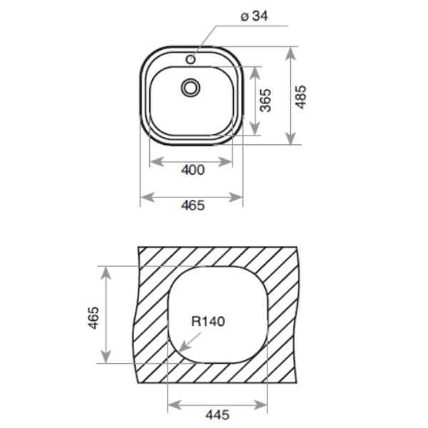 Encastre | Lava-louças de uma bacia | Aço inoxidável 18/10 | Válvula de 3 ½” | Profundidade da bacia: 165 mm | Orifício para misturadora incluído | Móveis de 45 cm | Medidas gerais (axlxp): 485x465x165mmencastre > lava louças72.94NovoProduto disponívelEncastre
