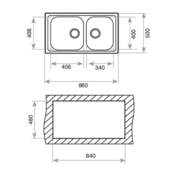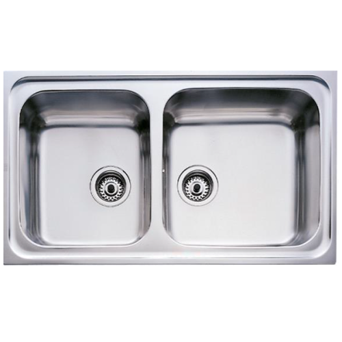 Encastre | Lava-louças de duas bacias | Aço inoxidável 18/10 | Válvula de 3 1/2“ | Chapa de grande espussura | Profundidade das bacias: 190mm | Reversível (sem furação): opção de ter o escorredor à direira ou à esquerda | Móveis de 90cm | Com sifão e ligações | Medidas exteriores (axlxp): 500x860x190mmencastre > lava louças238.49NovoProduto disponível €238,49