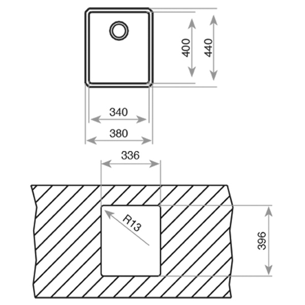 Sob tampo Pureline | Lava-louças de uma bacia | Aço inoxidável 18/10 | Raio da bacia R15 para facilitar a limpeza e a drenagem da água | Válvula de 3 ½” e sifão | Acessórios de fixação | Chapa de grande espessura | Profundidade da bacia: 200 mm | Silent Smart,50% menos ruído | Móveis de 45 cm | Medidas gerais (axlxp): 380x440x200mmencastre > lava louças162.51NovoProduto disponível €162,51