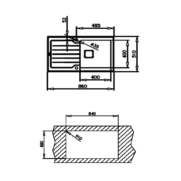 bacia principal (PxL):400 x 400mm