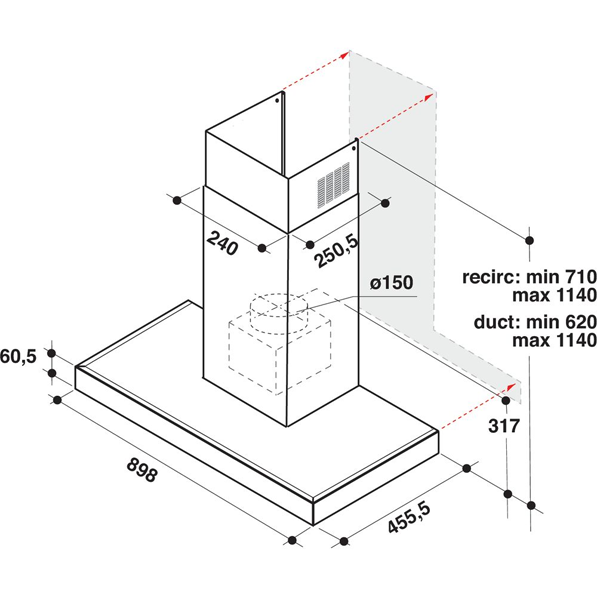 Extracção de ar na Função Boost: 730m3/h |