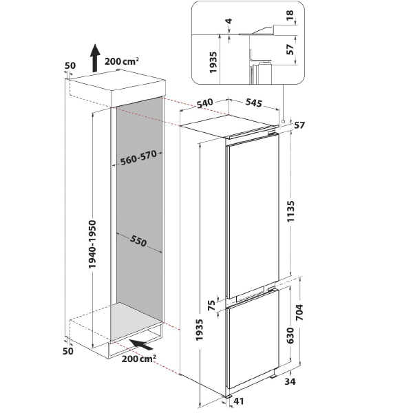 Dimensões:A 193,5 x L 54 x P 54,5 cm