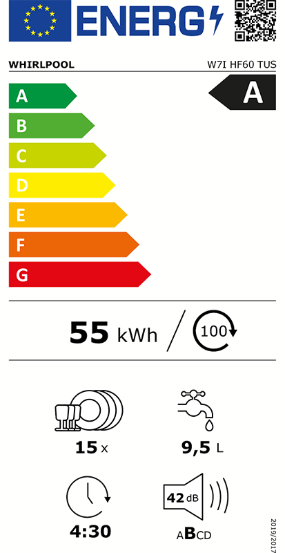 Este aparelho Whirlpool conta com a máxima poupança energética com a classe de eficiência energética A.