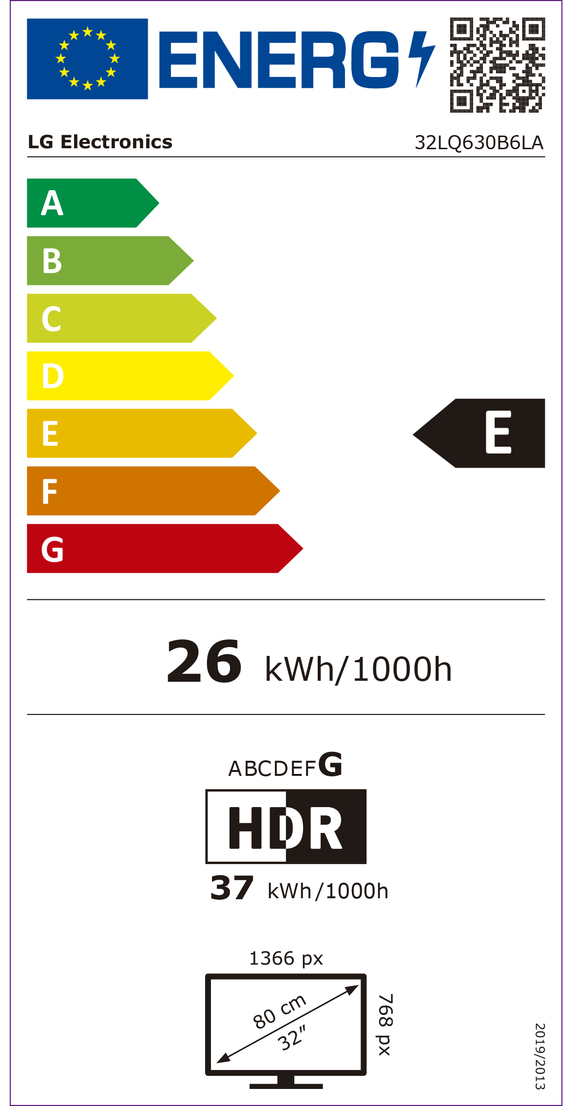 Consumo energético em HDR por 1000 horas: 37 kWh |