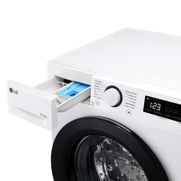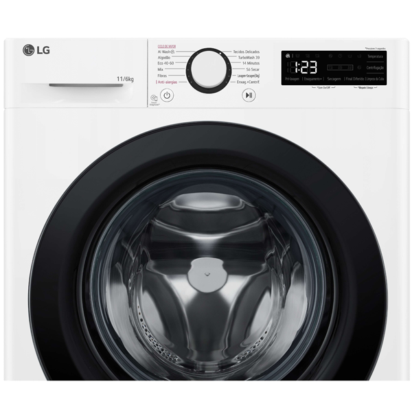 Programas de lavgem: AI Wash™; Algodão; Eco 40-60; Mix; Fibras; Anti-alergias; 14 minutos; Tecidos delicados; Algodão Rápido; Enxaguamento + Centrifugação; Lavagem + Secagem; Só secagem |