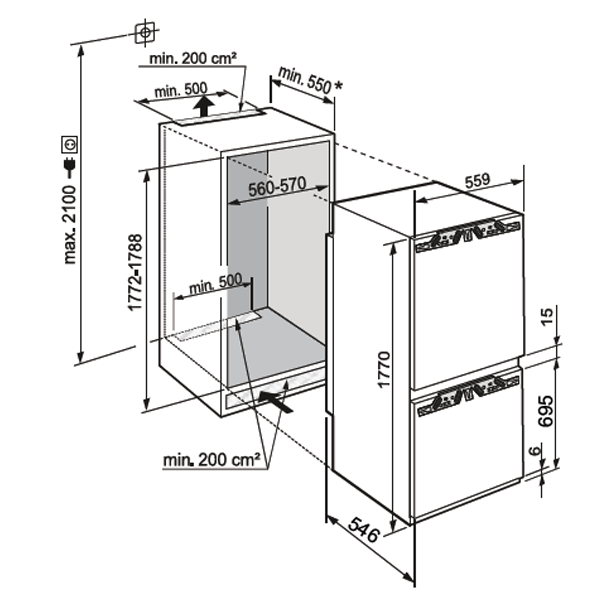 Dimensões de abertura em cm (A / L / P) 177,2-178,8 / 56-57 / min. 55 |