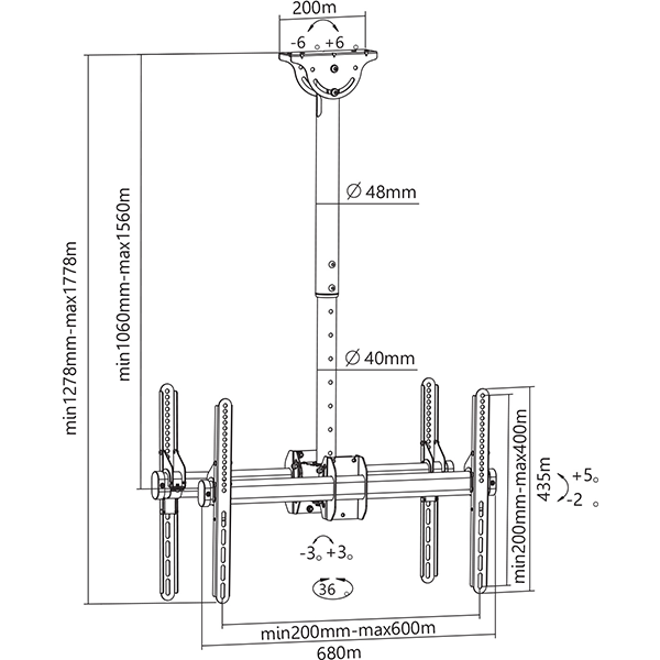 Suporte de teto: 42 - 90 | Peso máximo: 100kg | Máx. Vesa: 600X400 | Pretoelectrónica consumo > tv129.96NovoProduto Limitado €129,96