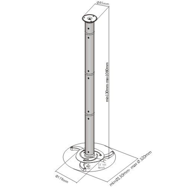 Suporte de teto | Peso máximo: 10kg | Altura ajustável 130 / 1060mm | Cor: Silverelectrónica consumo > video51.04NovoProduto disponível €51,04