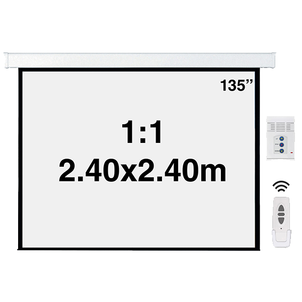 Ecran de projeção 135 | Relação: 1:1 | Possibilidade de fixação à parede e ao teto | Blackout (Costas Pretas) 4 black borders (moldura preta) | Tela Matte White | Travamento automático | Comutador de parede e comando via rádio | Motor tubular silencioso 220V | Dimensão Imagem (LxA): 2400X2400mm | Dimensão tela (LXA): 2480X2720mm | DROP: 4cmelectrónica consumo > video197.00NovoProduto Limitado €197,00