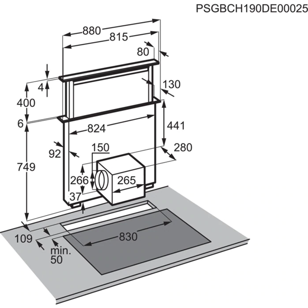 Instalação: Integrar, 90 cm largura | Níveis de potência: 3 + 1 Intensivo, Função Brisa | Cap. extração, nível intensivo: 700 m3/h | Cap. de extração, nível máx/mín: 470 m3/h / 265 m3/h | Aspiração perimetral: Para consumos de energia reduzidos e níveis de ruído mais baixos | Evacuação ou recirculação (filtro de carvão incluído) | Indicador de saturação de filtro de gordura | Indicador de saturação do filtro de carvão | 1 lâmpadas Tira LED | Filtros: Malha de Alumínio, 2 | Instalação: Integrar | Altura máxima: 1155 | Altura, mm: 755 | Largura, mm: 880 | Profundidade, mm: 280 | Cor: Preto | Classe de eficiência energética: A | Nível de ruído máximo: 59 dB(A) | Nível de ruído em modo intensivo dB(A): 67 dB(A) | Nível de ruído mínimo dB(A): 48 dB(A)encastre > exaustão encastre1251.57NovoProduto Limitado €1.251,57