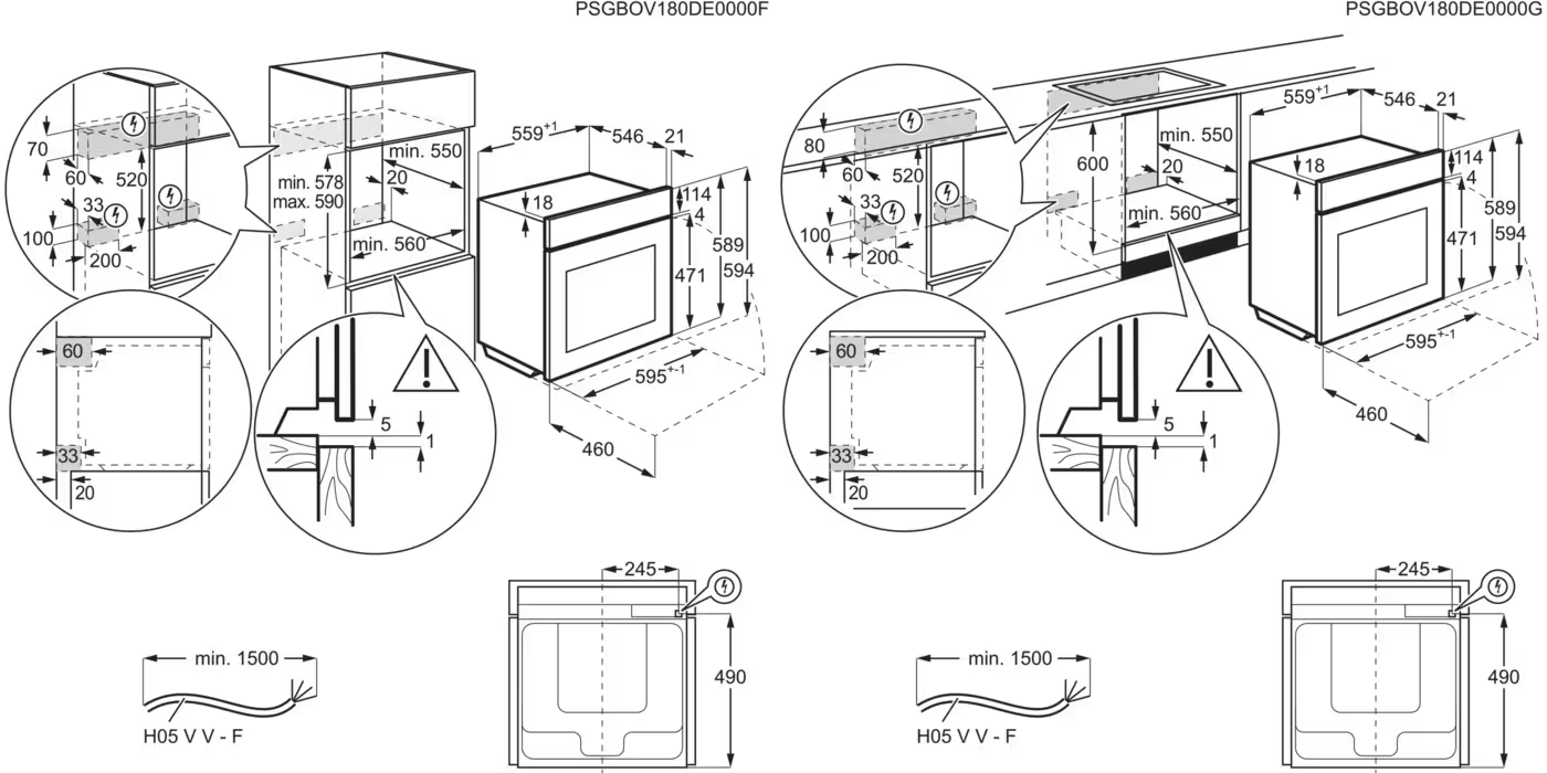 Dimensões de encastre (AxLxP), em mm: 590x560x550 |
