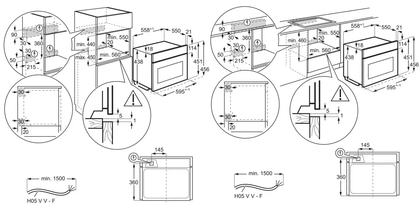 Dimensões de encastre (AxLxP), em mm: 450x560x550 |