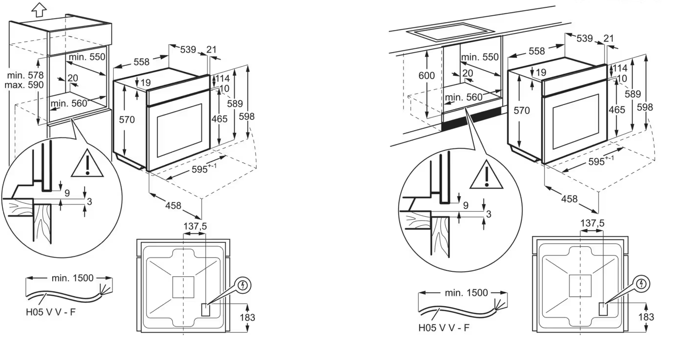Dimensões de encastre (AxLxP), em mm: 593x560x550 |