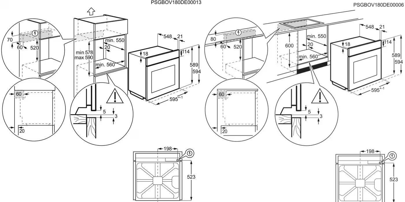 Dimensões de encastre (AxLxP), em mm: 600x560x550 |