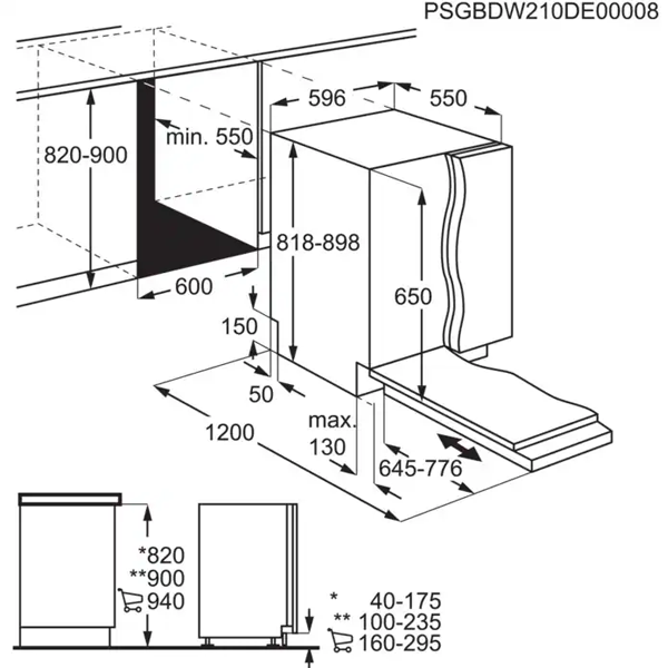 Dimensões A(min/máx)xLxP (mm):820/900 x 600 x 550