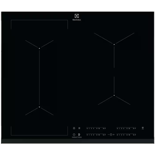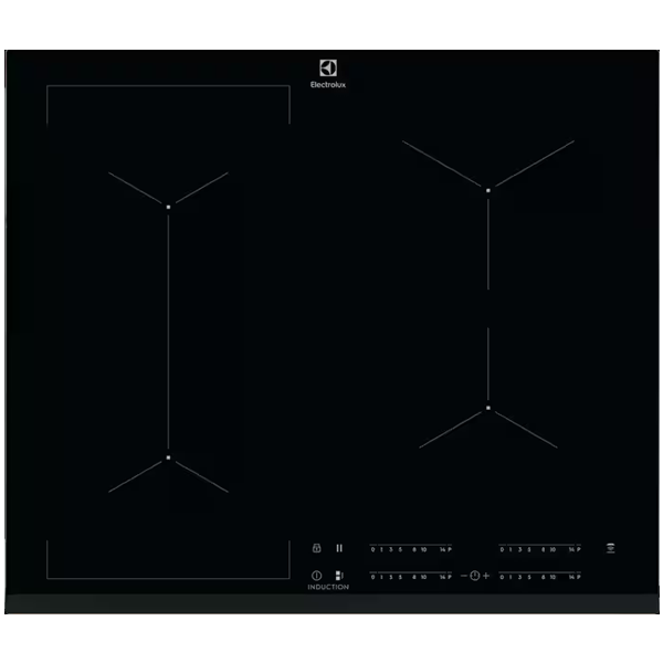 Funções:Indicador de calor residual em três passos,Alarme acústico,Aquecimento automático,Função PowerBoost,Segurança de crianças,Temporizador,Temporizador Eco,Função Hob2Hood,Bloqueio de painel,Função ponte,Aviso por minutos,Função Pausa,Desativar som,Temporizador