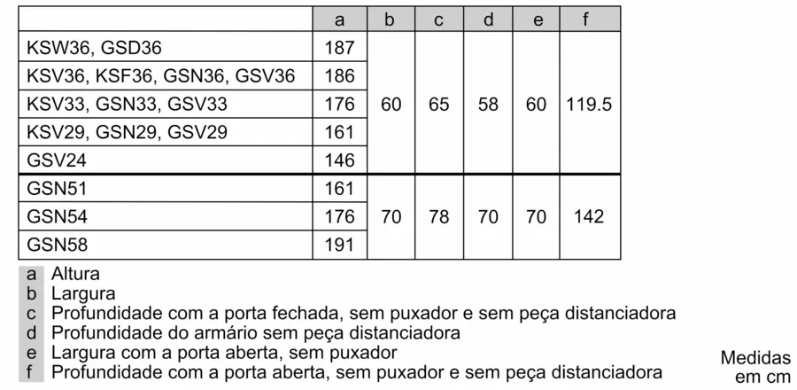 Aparelho (A x L x P sem puxador): 176 x 60 x 65 cm