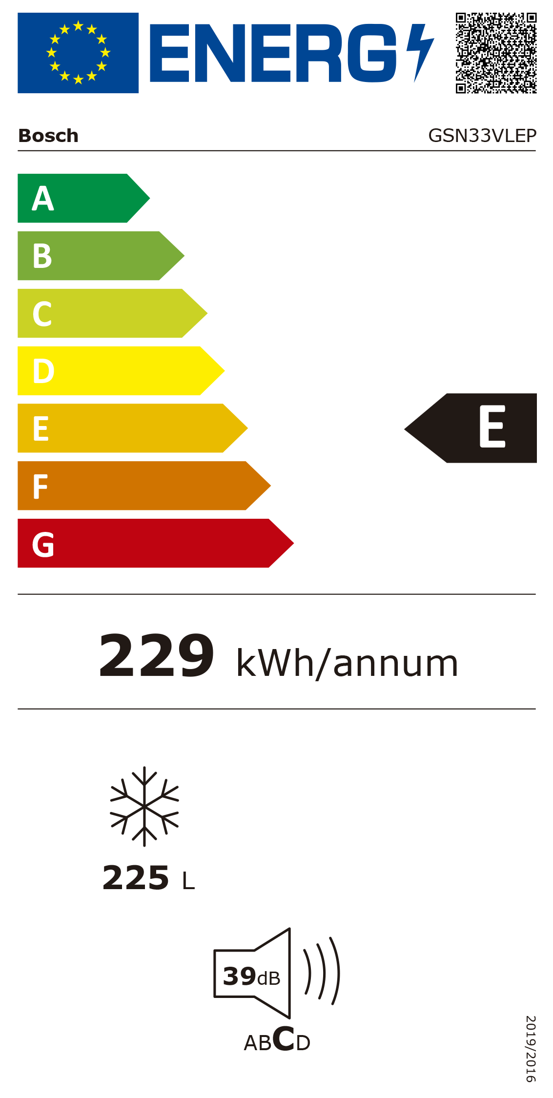 Consumo anual de energia (kWh/ano):229 kWh/ano