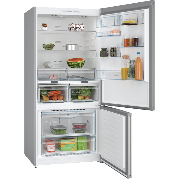 CONFORTO E SEGURANÇA | NoFrost - descongelação automática | Visualização e controlo electrónico da temperatura, através de visor de LED´s | 2 circuitos de frio independentes com regulação separada da temperatura para Frigorífico e Congelador | Opção Super Refrigeração | Alarme óptico e acústico de porta aberta