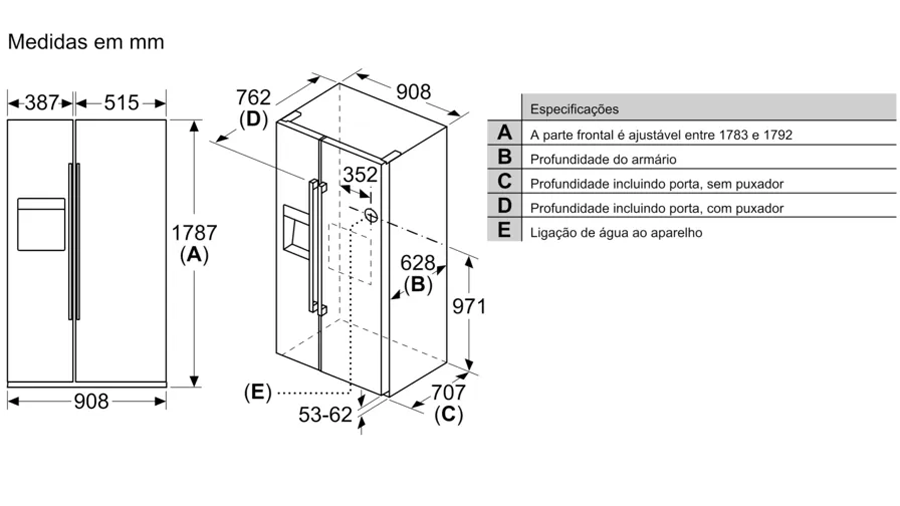Aparelho (A x L x P sem puxador): 178.7 x 90.8 x 70.7 cm |