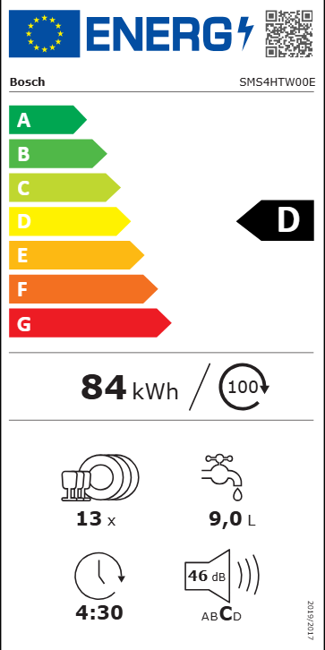 ³ Consumo de água em litros por ciclo (no programa Eco 50 °C) |