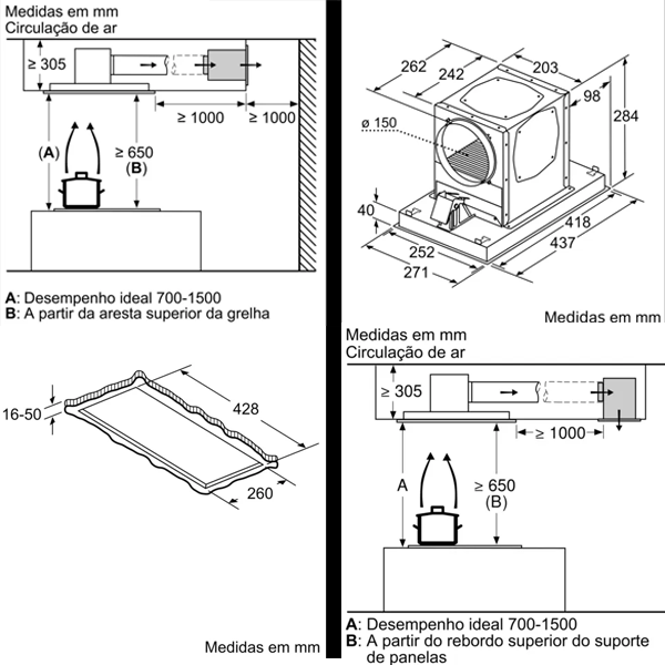 Possibilidade de instalação da conduta na parte frontal,nas laterais ou na parte superior