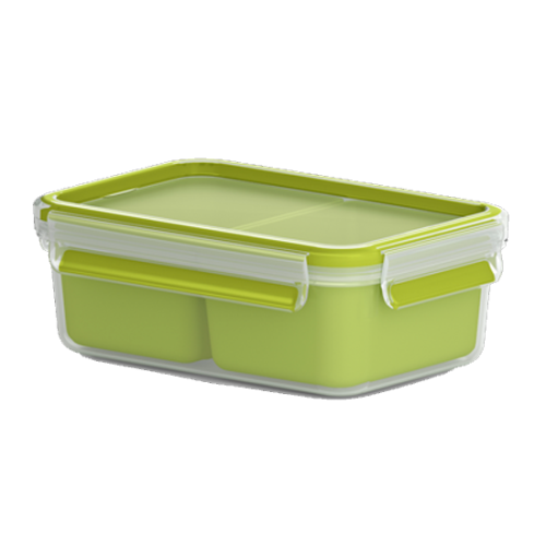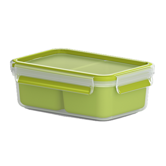 Caixa para lanche retangular caixa higiénica e segura de transportar. Disponível em 3 tamanhos,com 2 ou 3 compartimentos para o transporte Sem BPA Capacidade:0,55lts