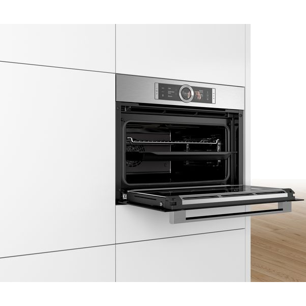 Forno compacto a vapor com 12 modos de aquecimento: Ar quente 4D, Ar quente suave, Calor superior/ inferior, Calor superior/ inferior suave, Grelhar com ar quente, Grelhar-grande quantidade, Grelhar-pouca quantidade, Função Pizza, Calor inferior, Assar lentamente, Preaquecer a loiça, Manter quente |