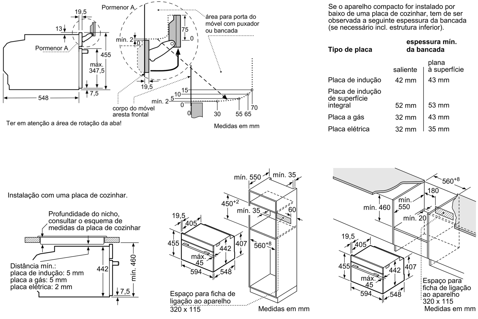 Dimensões do nicho (AxLxP):450-455 x 560-568 x 550 mm