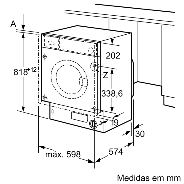 INFORMAÇÃO TÉCNICA | Base com altura ajustável até: 15 cm | Base com profundidada ajustável até: 6.5 cm | Pés traseiros ajustáveis pela parte frontal do aparelho | Dimensõess (AXLxP): 81.8 cm x 59.6 cm x 54.4 cm | Profundidade: 54.4 cm | Profundidade incluindo óculo: 57.4 cm | Profundidade do aparelho com porta aberta: 95.6 cm