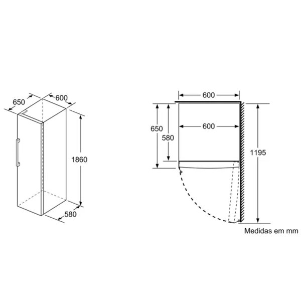 Aparelho (A x L x P sem puxador):186 x 60 x 65 cm