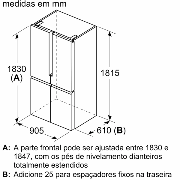 Aparelho (A x L x P sem puxador): 183 x 90.5 x 73.1 cm |