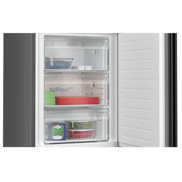 CONFORTO E SEGURANÇA | noFrost - descongelação automática | Home Connect: monitorização e controlo remoto | Controlo Remoto via app Home Connect, Bluetooth | Regulação eletrónica da temperatura através de display LED | 2 circuitos de frio independentes com regulação separada da temperatura para Frigorífico e Congelador | Função super refrigeraçăo | Alarme óptico e acústico de porta aberta | Alarme óptico e acústico para falha no compartimento de congelação
