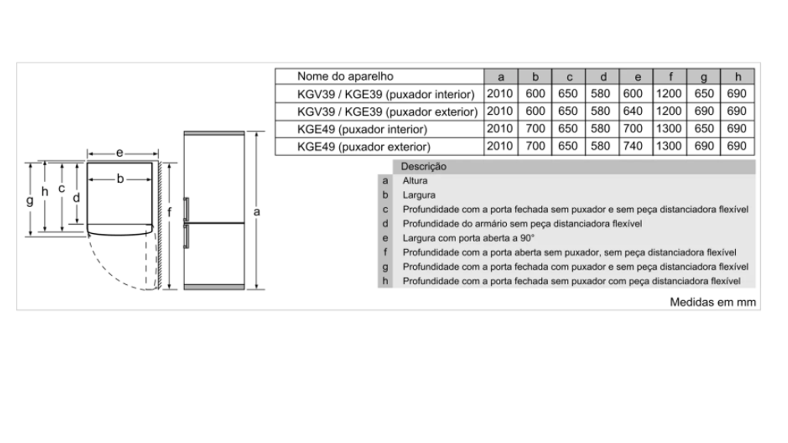 Aparelho (A x L x P sem puxador):201 x 70 x 65 cm