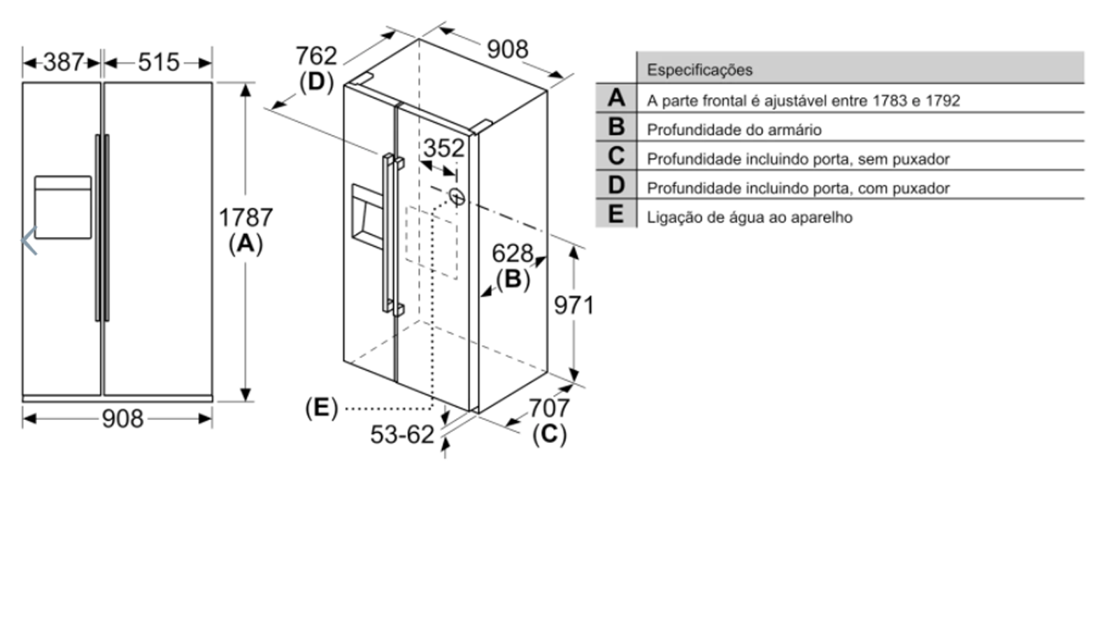 Aparelho (A x L x P sem puxador): 178.7 x 90.8 x 70.7 cm |